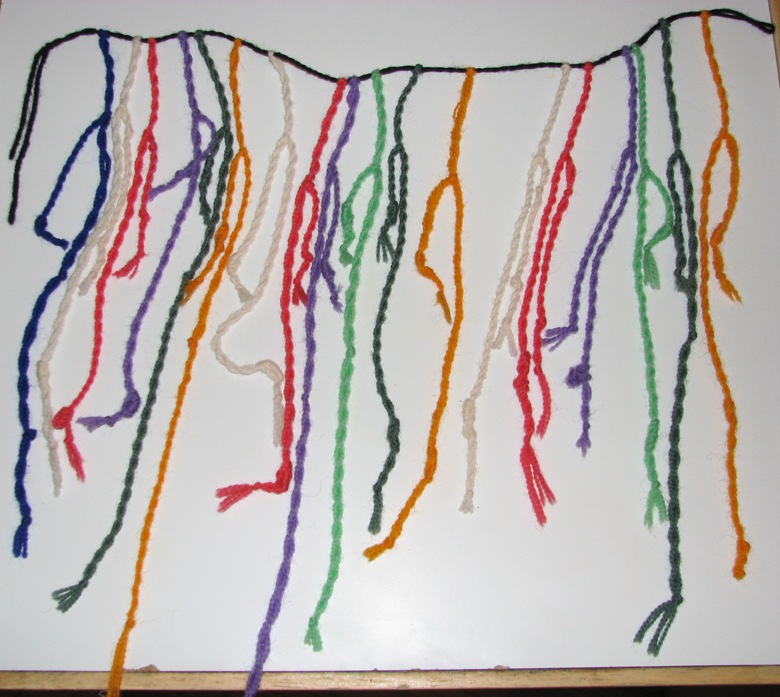 Knotted cords were in widespread use all over the world at one time and it is thought that mankind may even have gone though a ‘knotted cord’ era. The author of the Tao Te Ching (VIth century B.C.) who is a Luddite hostile to new-fangled inventions and to civilization generally speaks nostalgically of the days when mankind used knotted cords instead of written numbers.